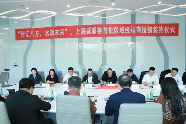 近日,上海威派格智慧水务股份有限公司(以下简称 “威派格”)首批区域经销商签约仪式在总部工厂隆重举行。威派格董事长李纪玺、副总经理韩强、渠道部总监黄荣斌及各区域渠道负责人,与来自全国各地的六家优质经销商代表一同出席,携手开启渠道协作新篇章,共拓智慧水务行当新格局。